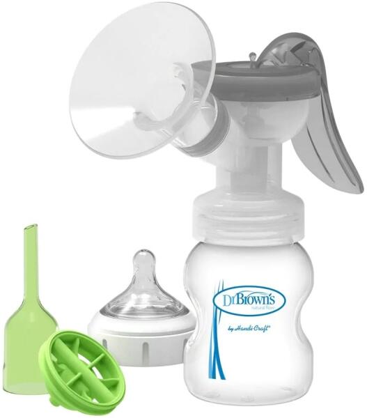 Kényelmes kézi mellszívó puha, 100% nem szilikon tapadókoronggal (sapkával) B 25mm-es méretben, mely alkalmazkodik a mell formájához. A 2 fázisú szívórendszer lehetővé teszi, hogy hűen utánozza a baba természetes szopását szoptatás közben. A kezdeti üzemmód egy rövid és gyors pumpálás, amely serkenti a tej indulását. A második módban az ingerek lassabbak és hosszabbak, hasonlóan a csecsemő szoptatás közbeni nyugodt szisztematikus szopásához. A csomag tartalmazza a baba pumpálásához, tárolásához és etetéséhez szükséges alapkészletet. A csomag része egy szilikon tapadókorong (sapka) B (25 mm) méretben, további A (21 mm) vagy C (30 mm) méret vásárlási lehetőséggel. BPA mentes. Meghatározás Segédeszköz szoptató anyáknak az anyatej pumpálásához és tárolásához. A készlet mindent tartalmaz, ami a szivattyúzáshoz, tároláshoz és etetéshez szükséges. Minden alkatrész alkalmas a mosogatógép felső részére. Csomagolás 1x kézi anyatejpumpa, 1x Dr. Brown's Options+ 150 ml széles (széles nyakú) csecsemő kólika elleni cumisüveg cumival, 1. szintű áramlási sebességgel, 1x utazósapka cumisüveghez, 1x tisztítókefe palackokhoz és tartozékokhoz